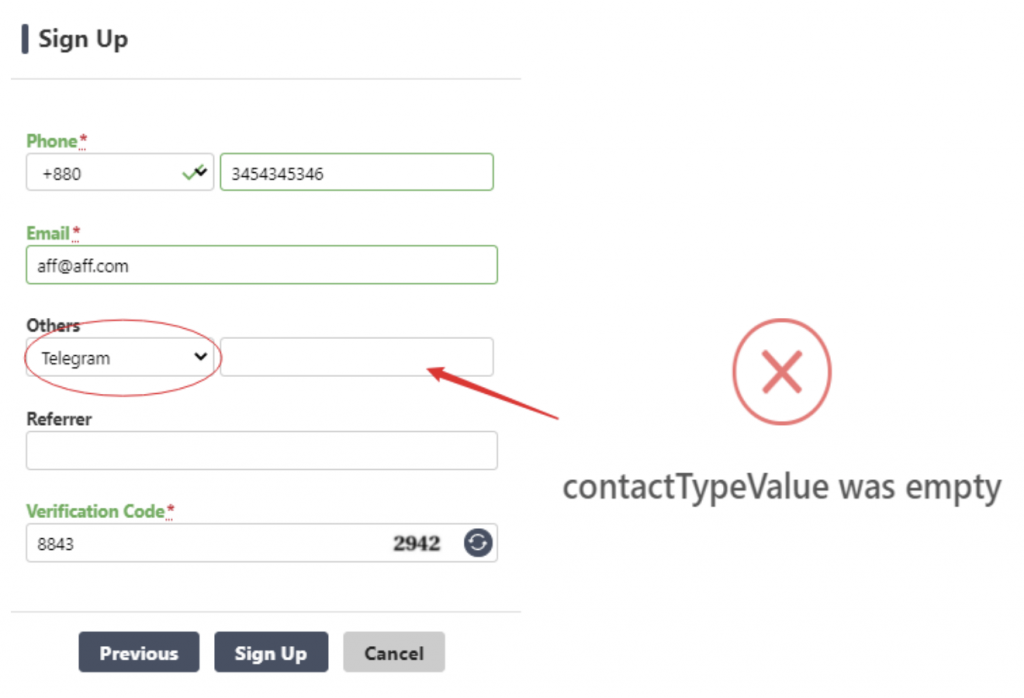 1. Bạn đã chọn một phương thức liên lạc nhưng lỗi xảy ra do bạn không nhập thông tin chính xác.