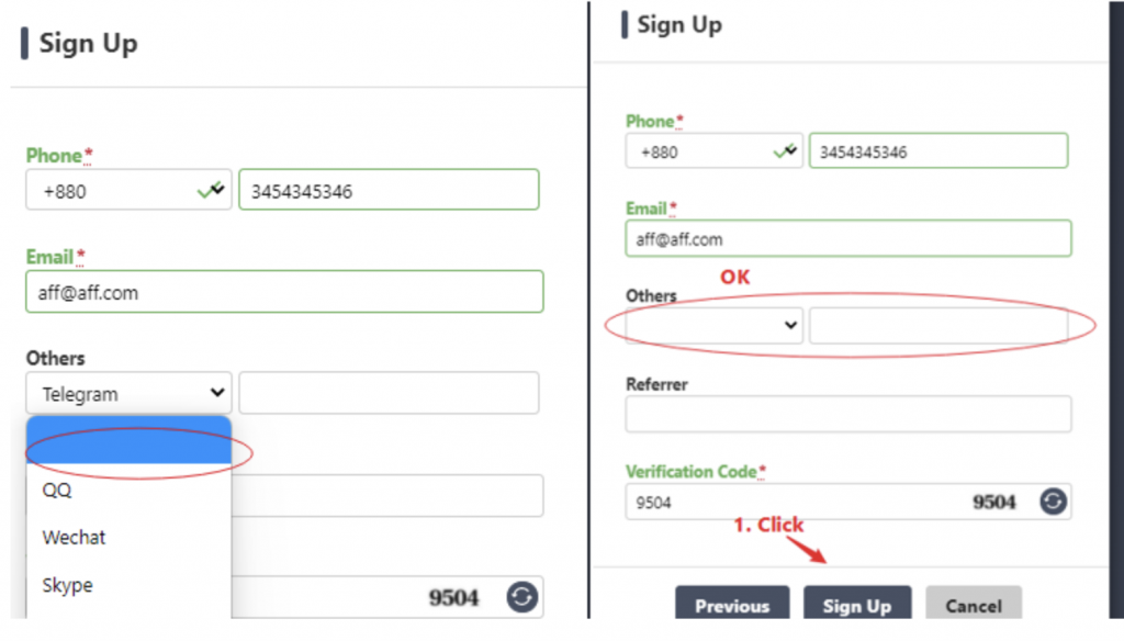 2. Nếu bạn không có phương thức giao tiếp khác, hãy chọn “Trống”.